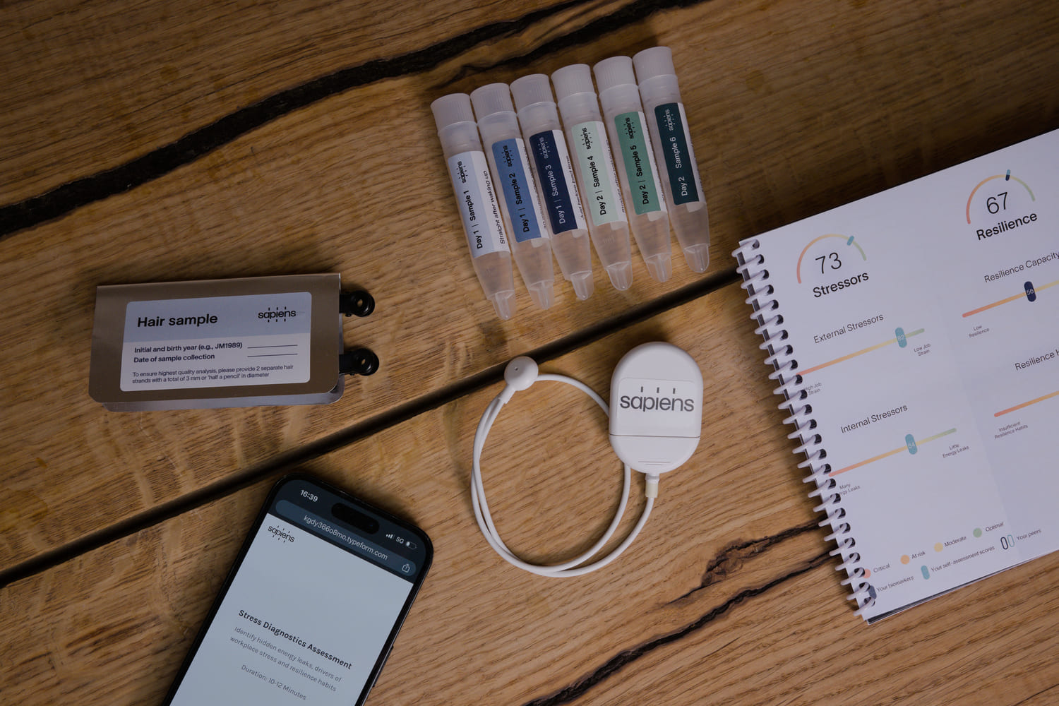 Before and after our 3 to 6 months executive human performance programs, we apply the Sapiens Stress Diagnostics Kit to measure program impact.