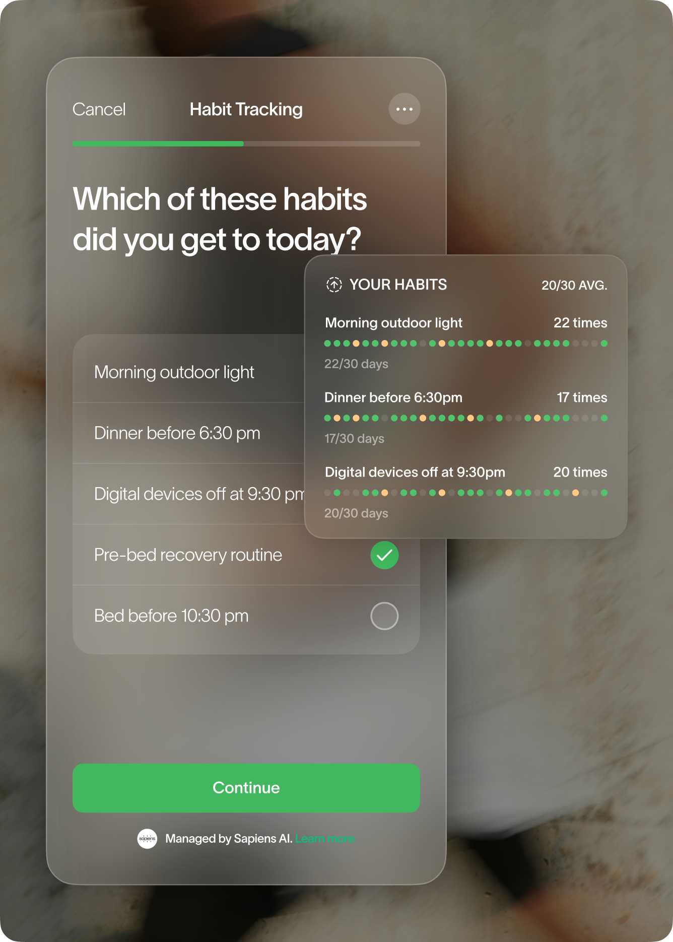 At Sapiens, we don’t just talk about behavioral science—we build it into the Sapiens Habit Change Experiment System.